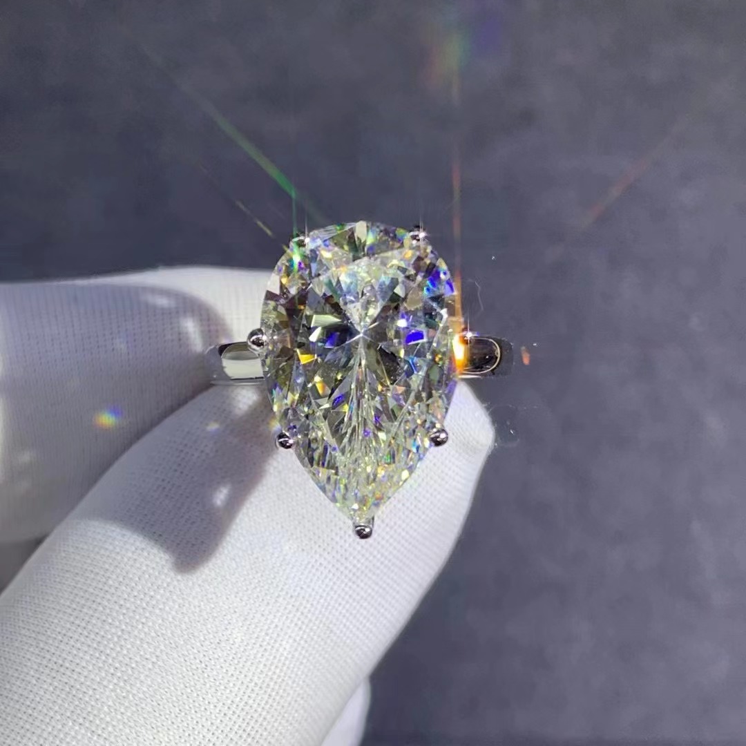 Drop-shaped Diamond Cut Yellow High Carbon Rhinestone Ring