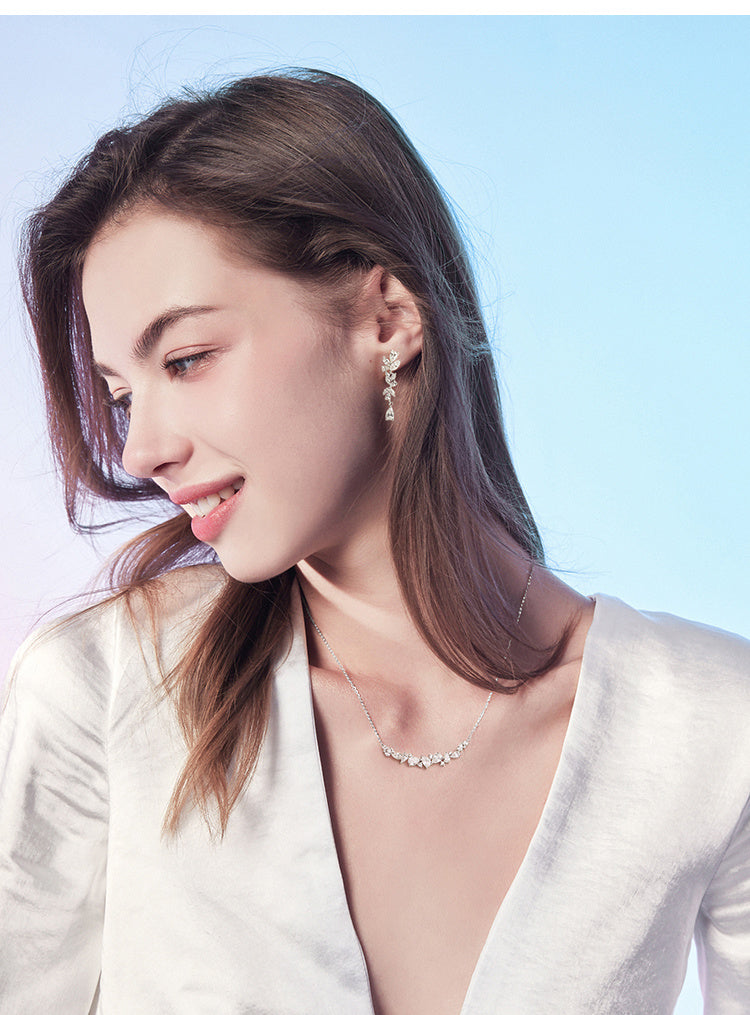 Silver Wisteria Flower Smile Necklace Zircon Women